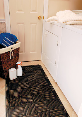 Inevitably, the laundry room constantly needs cleaning and organizing. Why not invest in non-plush flooring. These tiles are hard enough, so fluffs will not stick to it, but soft enough so that it won’t cause discomfort underfoot. Add a wicker laundry bin so that cleaning remains an easy chore!